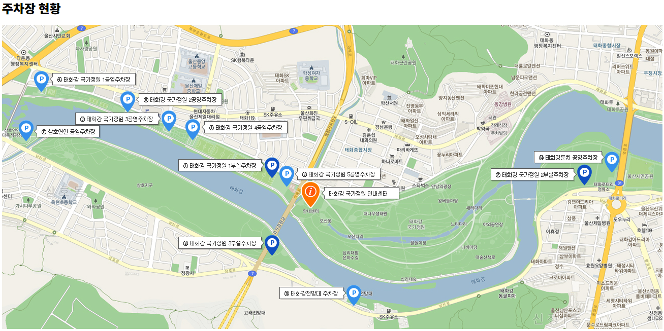 · 이용시간: 주차장별 운영기준에 따라 상이함/ 태화강 국가정원 공영 및 부설주차장은 모두 유료
