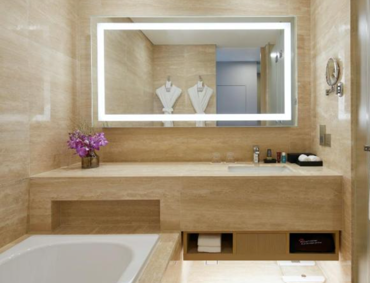 디럭스 룸 역시 심플한 베이지톤 가구와 간접 조명을 사용해 편안함과 안락함이 특징이며 세면대 공간과 화장실, 샤워실을 분리해 욕실 사용이 훨씬 더 편리하다.