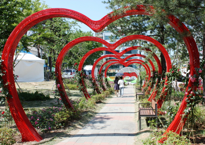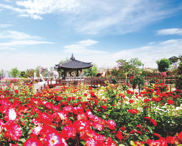 · 한 공간에 피는 장미송이 수로 세계 최대 규모로 222종 16만주의 세계각국의 다양한 장미가 식재되어 있고, 교목18종, 관목21종 등과 어울리는 로즈가든, 장미터널, 산책로, 맨발공원, 바닥분수, 암석원, 포토존 등 아름다운 정원을 연상케하는 공간배치로 매년 관람객이 폭발적으로 늘어나고 있는 곳