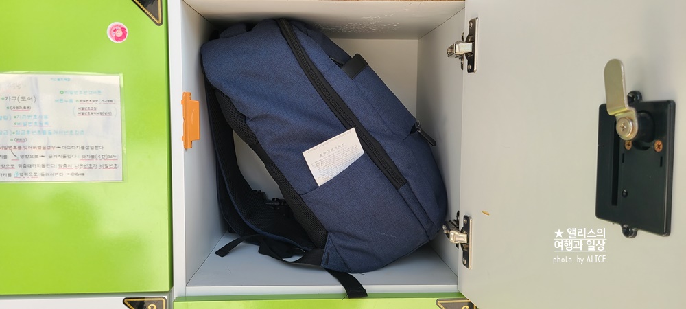 단.. 직접 이용해보니 이 짐 보관함의 가장 큰 단점은 크기가.... 작다는 것 ㅠ0ㅠ 나의 백팩이 정말 힘겹게 들어갔달까.... 크기가 작아서 일반 여행용 가방인 캐리어 형태는 보관이 불가능하고 간단한 짐 정도만 보관이 가능하다. 이 짐 보관함 크기가 작으니 참고하자. 너무 큰 짐은... 보관 불가!
