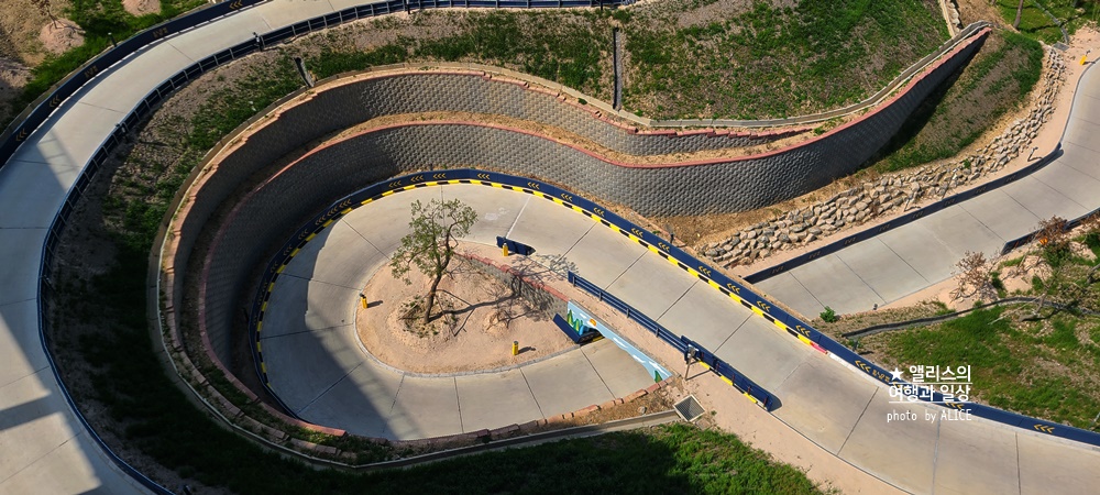 유독 경주 루지 월드는 구불구불한 코스가 많다고 느껴졌는데, 이 코스를 위에서 바라보니 실제 체감한 것과 아주 동일했다. 그러므로 전반적으로 낮은 속도를 유지해야 큰 위험 없이 안전하게 즐길 수 있고, 자신을 너무 믿지 말도록 하자! 무엇을 하든 안전하게 탑승하는 것이 가장 중요하니까!