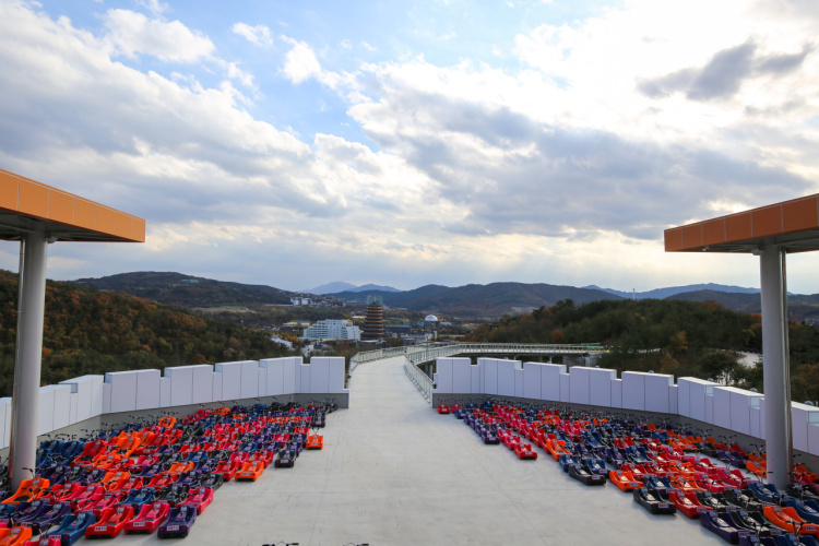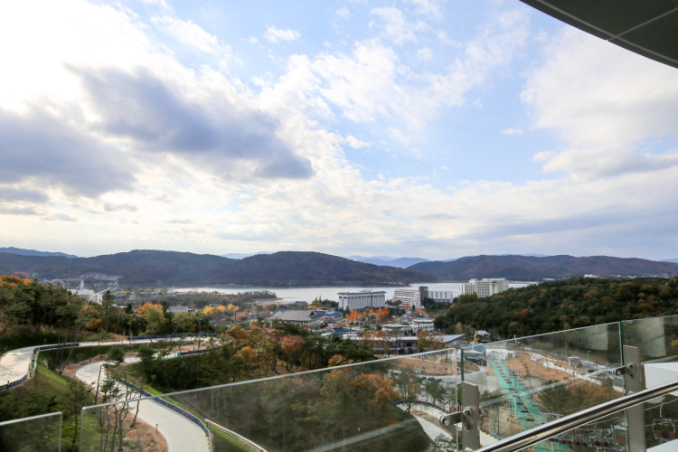 경주에서도 제법 높은 곳에 위치한 루지월드 덕분에, 루지 탑승장소까지 올라오면 자연스레 멋진 전망대의 전경을 볼 수 있다. 경주 루지월드는 보문단지 내에 있기 때문에 거대 인공호수인 보문호를 둘러 위치해있는 호텔 건물들은 물론 그 반대편의 산까지도 함께 멋진 풍경을 볼 수 있다. 시원한 바람이 날리고, 푸른 산과 나무 그리고 멋진 조경까지 볼 수 있어서, 왜 리프트권만 따로 판매하고 있는지 알 수 있었다.