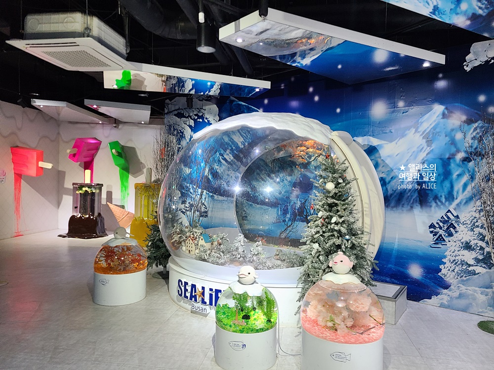 극지방을 콘셉트로 꾸며진 빙고 존에서 대형 스노볼과 아이스크림 수조, 실제 눈밭에 누운 듯한 스노우 월 등 다양한 포토 스폿과 해양생물들을 만나보자!
