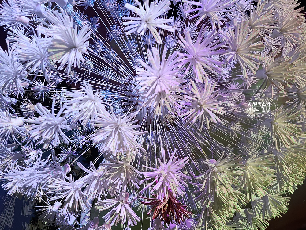 거대한 민들레꽃이 있는 곳이다. 하얀색 민들레꽃이지만 그 안에 잘 찾아보면 분홍 홀씨를 찾을 수 있다. (위 사진에서도 분홍 홀씨가 보인다.) 그 분홍 홀씨 앞에서 박수를 치거나 입장권으로 바람을 만들어보자. 흔들리는 분홍홀씨가 반응하여 내가 있는 모든 공간은 민들레가 흩날리는 영상으로 가득 찬다.