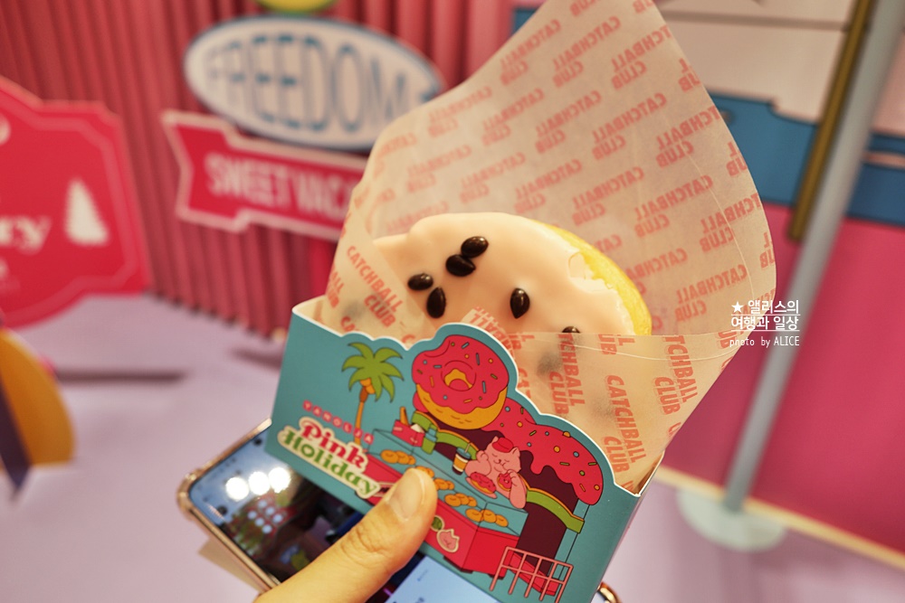 누구나 이벤트에 참여하면 받을 수 있는 캐치볼 클럽에서 제작한 도넛. 특히 성수동에서 줄 서서 먹는다는 캐치볼 도넛이니 맛은 보장됨은 당연하다. 한입 베어먹으면 푹신하고 부드러운 도넛이 느껴진다. 개인적으로 도넛을 좋아하지 않는 이유는 특유의 퍽퍽함 때문인데, 캐치볼 클럽 도넛은 전혀 그렇지 않았다. 퍽퍽하지 않고 부드러우면서 약간의 쫄깃함. 맛이 좋다. 최고!