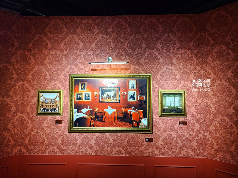 그 영화를 보면서 스토리도 흥미진진했지만 무엇보다도 영화 내내 담아낸 미술 등이 상당히 인상적이었다. (이는 나만 그렇게 느낀 것은 아니었을 테다.) 분명 실재하는 호텔은 아니겠지만 진짜 어딘가에 있을 것 같은 매력적인 분위기와 모습의 그랜드 부다페스트 호텔. 비록 1박에 100만 원이라고 해도 한 번쯤은 머물러 보고 싶은 몽환적인 호텔. 그 모습을 전시로 그대로 재현해낸 공간이 바로 이 공간이다. 체크인 플리즈