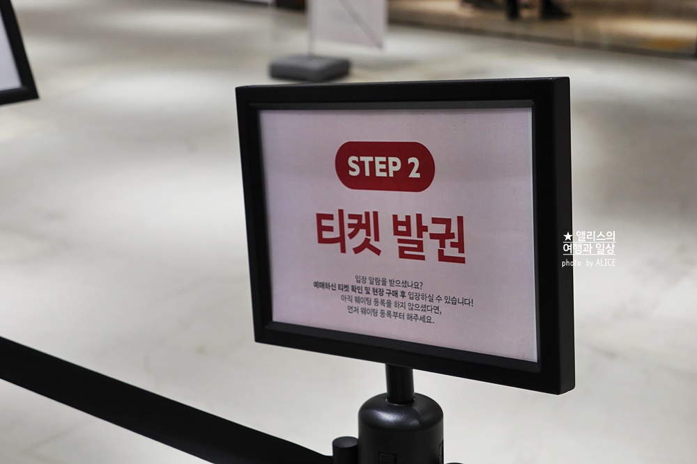 실물 티켓을 교환한 뒤 잠시 기다리다가 입장했다.