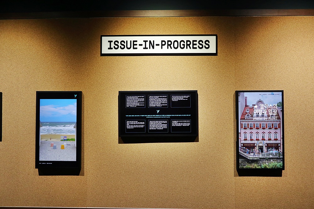 경주역에 가면 지붕이 한옥과 닮았다. 러시아의 기차역을 가면 층고가 높고 뭔가 클래식하다. 이처럼 지역별로 나라별로 각 특성을 담아냈거나 그렇지 않았다고 해도 멋진 역사를 가진 곳들이 많다. 그곳은 모두 터미널로 분류하여 이렇게 빨간 벽돌 위에 사진을 전시했다. 익숙하다고 생각했던 터미널의 순간과 모습들. 특별하게 만드는 재주는 이 붉은 벽돌이 큰 역할을 한 것일지도 모르겠다.