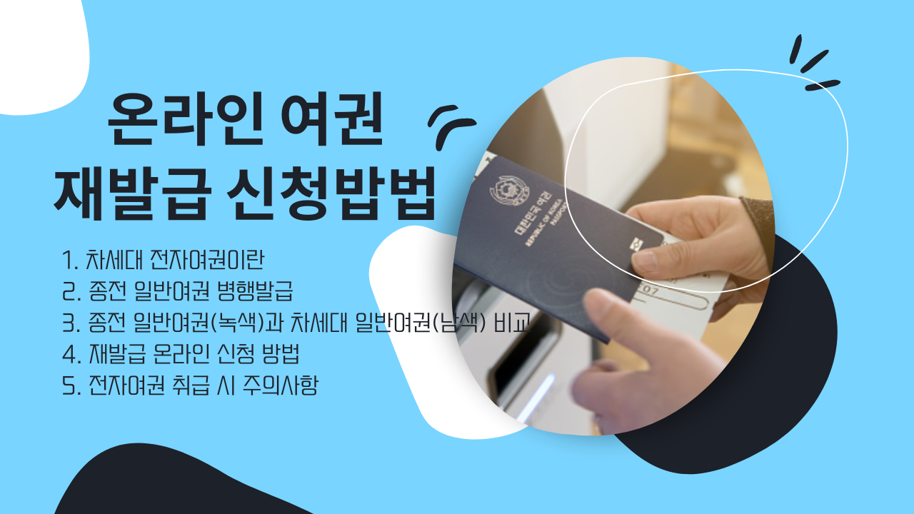 온라인 여권 재발급 신청밥법, 차세대 전자여권, 사진 규격 조건, 기존여권 발급방법, 발급 수수료, 주의사항