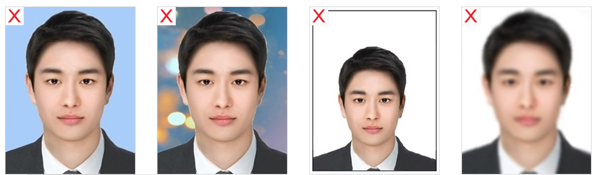 · 기타 여권용 사진 규정에 부합하지 않는 경우(외교부 여권안내 홈페이지 사진 규정 참고)