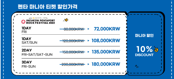 3. 2022 인천 펜타포트 락 페스티발 티켓 가격, 예매 & 할인 방법