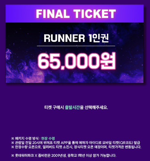 - 티켓 구매 이후 권종, 게임 출발 시간등의 정보는 수정불가