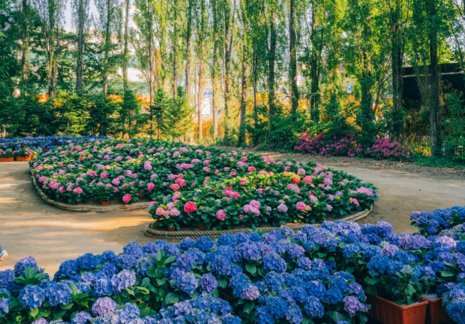 · 오픈 런 형식으로 펼쳐지며, 6월까지 아름다운 수국을 볼 수 있으며, 7월부터는 다른 꽃들로 대체된다.