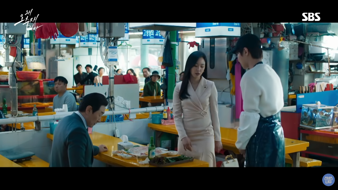 · 법무법인 율촌: 박소영의 죽음이 수재의 영향이 있어 대표자 자격이 없다고 자신을 쫓아버리고자 하는 선배들에게 살벌한 경고를 던지는 수재 장면. TK로펌 회의실