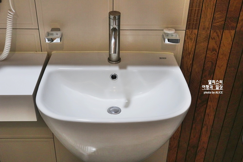 객실이 작은 만큼 화장실도 엄청 좁을 것이라고 예측하기 쉽겠지만 오히려 화장실과 샤워실은 그리 좁지 않다. 적어도 성인 2명이 들어와도 괜찮을 만큼 생각보다 그리 좁지 않았다.