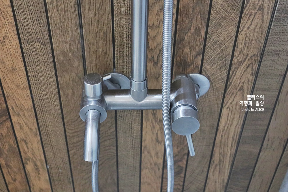 샤워공간도 좁지 않아서 편하게 샤워 가능했는데, 눈에 띄는 점은 뜨거운 물이었다.