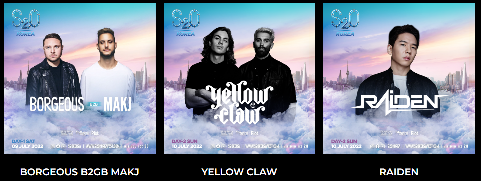 태국에서 시작해 일본, 대만, 중국을 넘어 드.디.어. 한국에서 처음으로 선보이는 S2O KOREA. 한국에도 송크란 뮤직 페스티발이 시작된다. 얼리버드 (프리세일) 티켓은 이미 매진되었을 정도로 뜨거운 열기를 확인할 수 있는 S20 코리아 송크란 뮤직 페스티벌. 과천 서울랜드 동문주차장에서 S20 코리아 송크란 뮤직 페스티벌가 시작되며 모든 공연이 끝나고 되돌아갈 셔틀버스까지 예약할 수 있어서 걱정없이 즐길 수 있는 여름 콘서트가 아닐까 싶다!