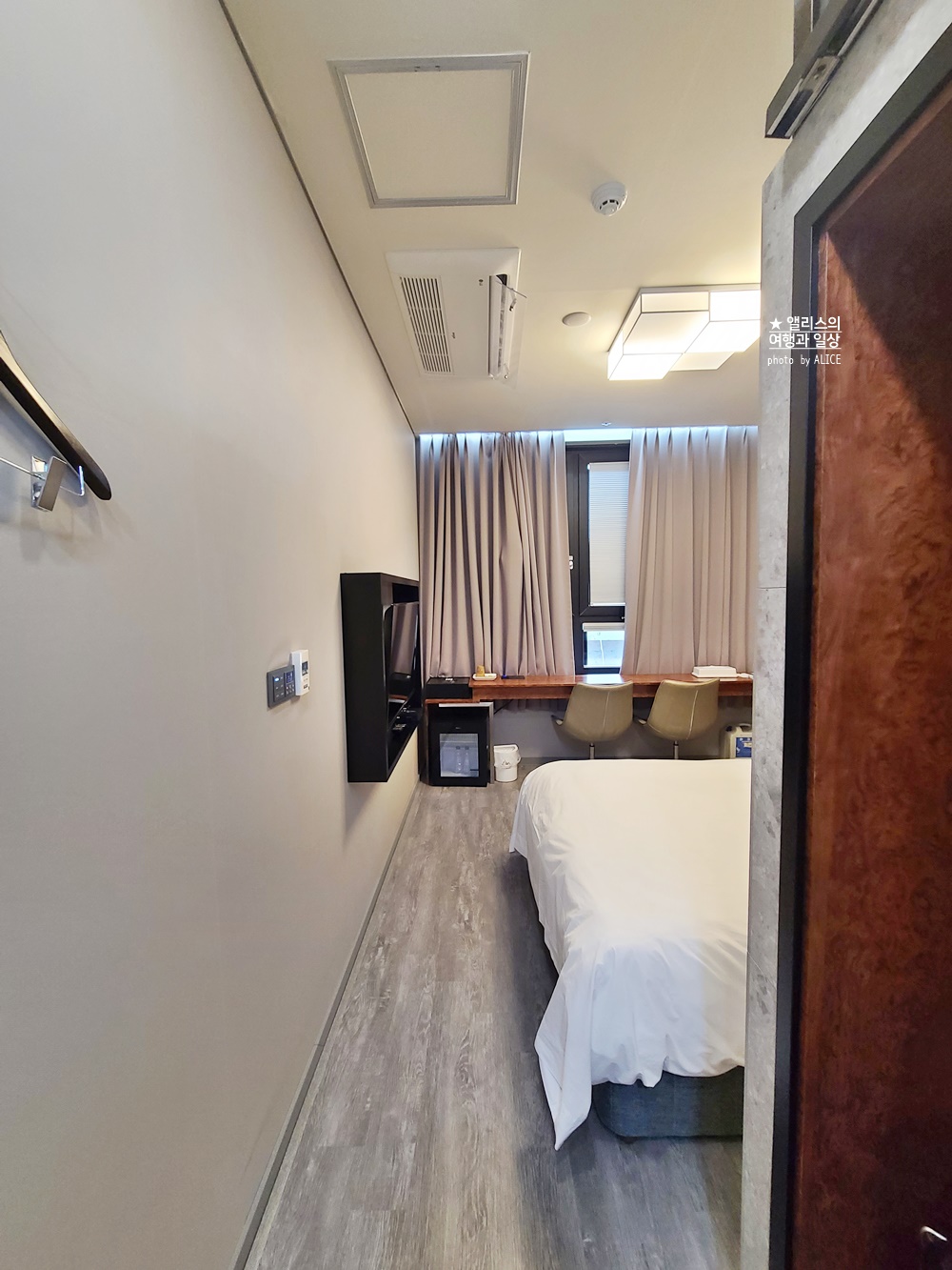 디럭스 더블룸은 보다시피 적당한 크기의 객실이었다. 들어서면서 느낀 것은 객실 1박 요금에 비하면 생각보다 객실공간이 넉넉하다는 느낌이 들었다. 도심지 중심에 있어 좋은 뷰를 기대하기란 위치가 어쩔 수 없이 기대할 수는 없겠지만 그럼에도 이용 가능한 창문이 있어서 신선한 공기를 객실로 언제든지 들일 수 있으니 그것도 참 좋았다. (개인적으로 창문 있는 객실을 좋아하는 이유가 신선한 공기 투입을 좋아함)