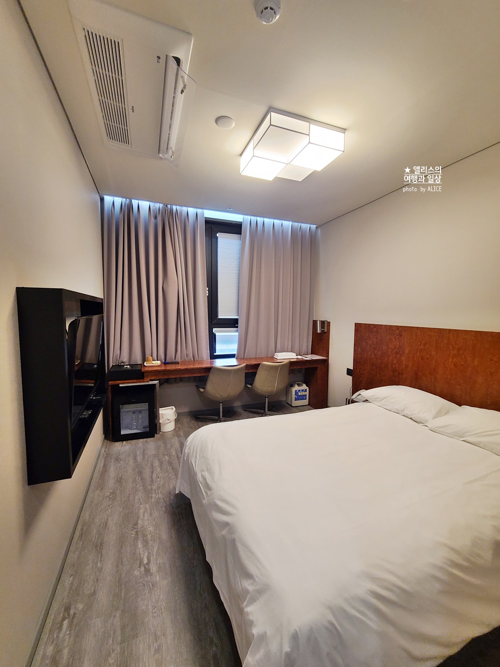 디럭스 더블룸은 보다시피 적당한 크기의 객실이었다. 들어서면서 느낀 것은 객실 1박 요금에 비하면 생각보다 객실공간이 넉넉하다는 느낌이 들었다. 도심지 중심에 있어 좋은 뷰를 기대하기란 위치가 어쩔 수 없이 기대할 수는 없겠지만 그럼에도 이용 가능한 창문이 있어서 신선한 공기를 객실로 언제든지 들일 수 있으니 그것도 참 좋았다. (개인적으로 창문 있는 객실을 좋아하는 이유가 신선한 공기 투입을 좋아함)