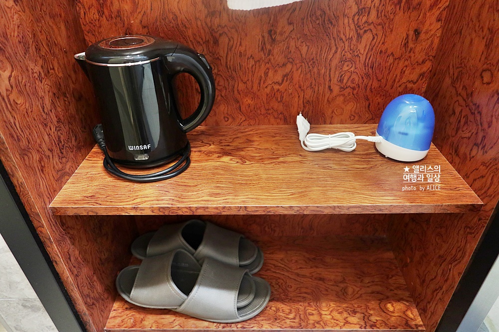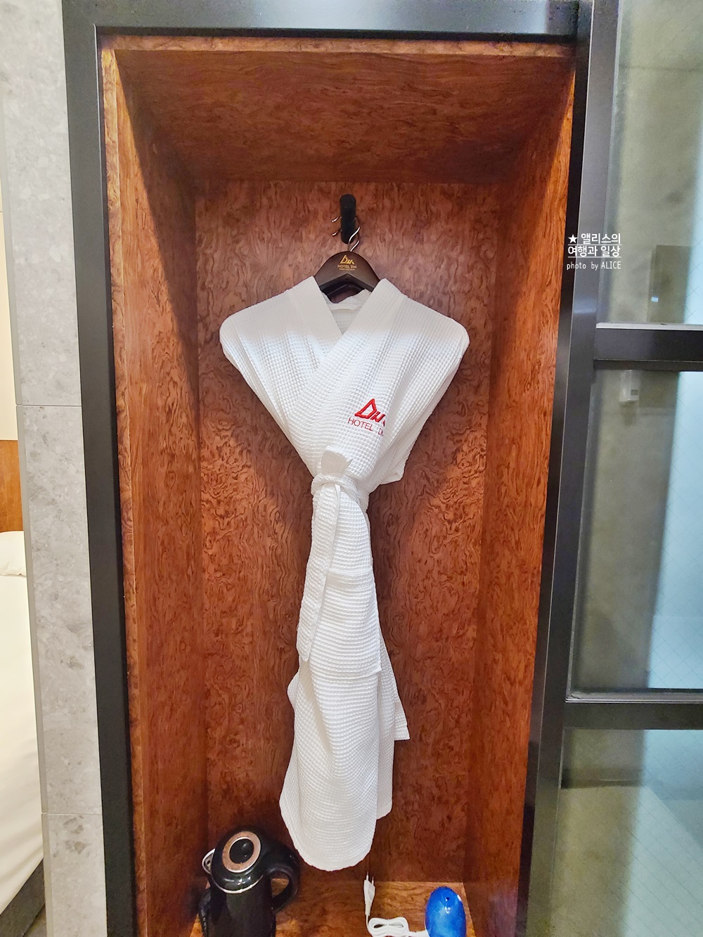 객실의 바닥은 보다시피 나무소재라 실내화를 신지 않아도 불편함이 없다. 개인적으로 나무 소재 바닥을 좋아하는데 호텔 DM는 다른 객실도 바닥은 나무 소재여서 이 부분이 참 좋았다.