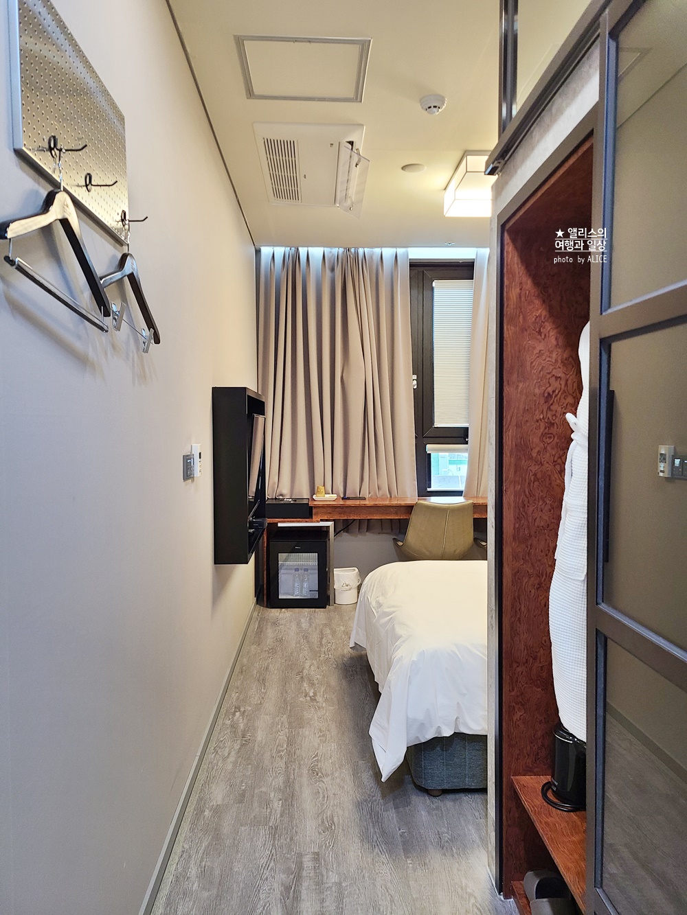 객실의 바닥은 보다시피 나무소재라 실내화를 신지 않아도 불편함이 없다. 개인적으로 나무 소재 바닥을 좋아하는데 호텔 DM는 다른 객실도 바닥은 나무 소재여서 이 부분이 참 좋았다.