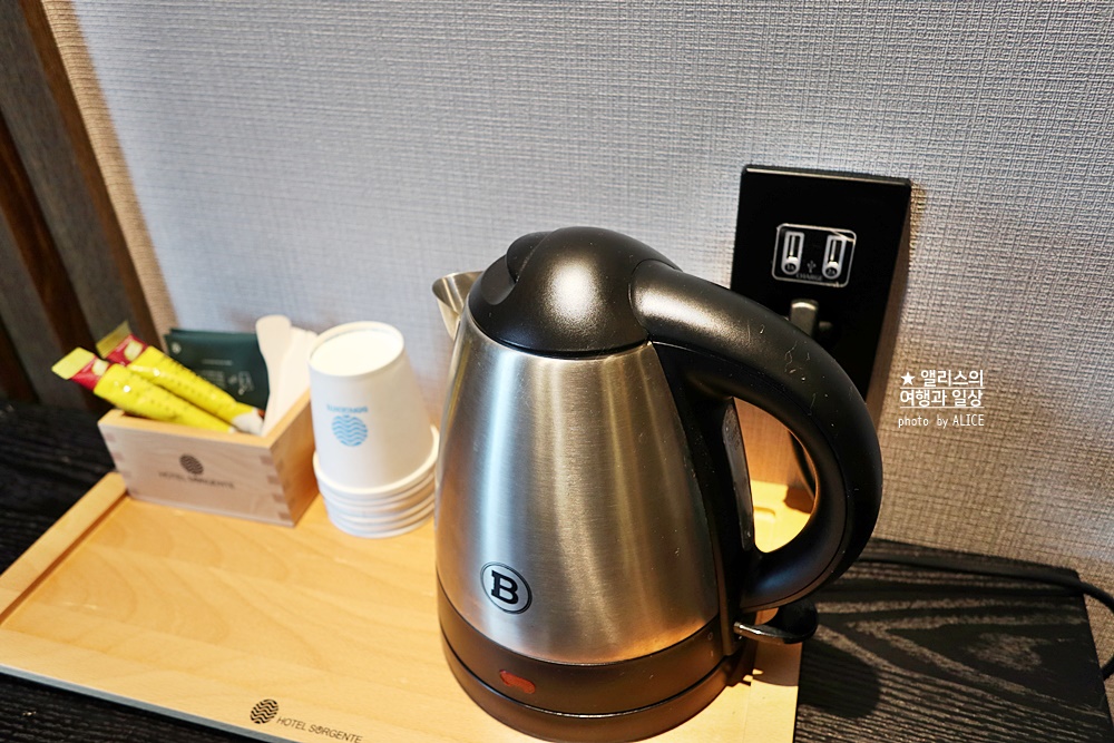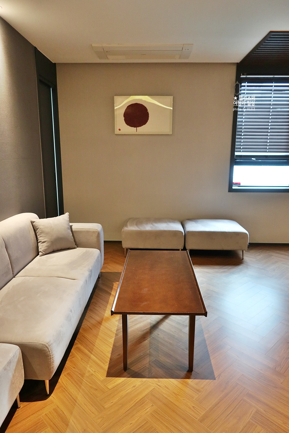 중문 역시 넉넉했고 별도로 앉거나 짐을 둘 수 있는 의자도 있어서 정말 편리했다. 신발을 신을 때마다 객실 입구 근처에 의자가 있는 것을 매우 선호하는데 소르젠떼 비지니스 호텔 스위트룸은 입구도 넓고 중문도 별도로 있으면서 앉으면서 신발을 신을 수 있도록 짐을 둘 수 있도록 의자를 길게 배치해둔 것이 무척 마음에 들었다.