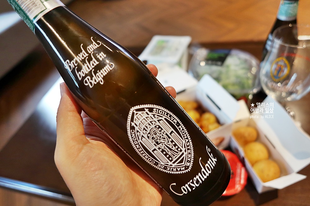 콜센동크 애플 화이트 맥주는 벨기에 정통 밀맥주에 청사과(아오리)가 들어간 것이 특징이다. 탁한 금빛과 함께 신선한 맛과 향, 부드러운 거품과 풍성한 사과향을 느껴지는 청량감이 좋아서 정말 야식으로 아주 제격. 페일 몰트, 홉, 효모, 천연 사과주스로 양조된 청사과 밀맥주로 차가울수록 맛있어서 1층에서 구매해서 바로 냉장고에 넣어둔 뒤, 2시간 뒤에 야식 시켜서 같이 마시면 아주 꿀맛이다.