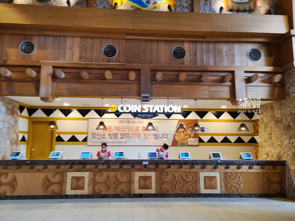 입장하자마자 보이는 곳이 바로 본관 로비 충전소다. 이곳은 시즌 상관없이 늘 운영하기 때문에 시즌 신경 쓰지 않고 편하게 롯데 워터파크 코인 충전할 수 있다. 그러므로 입장할 때 직원에게 팔찌를 받으면 그대로 직진 후 왼쪽으로 돌아보면 코인 스테이션이 있으니 이곳에서 미리 충전하고 락커룸으로 입장하자.
