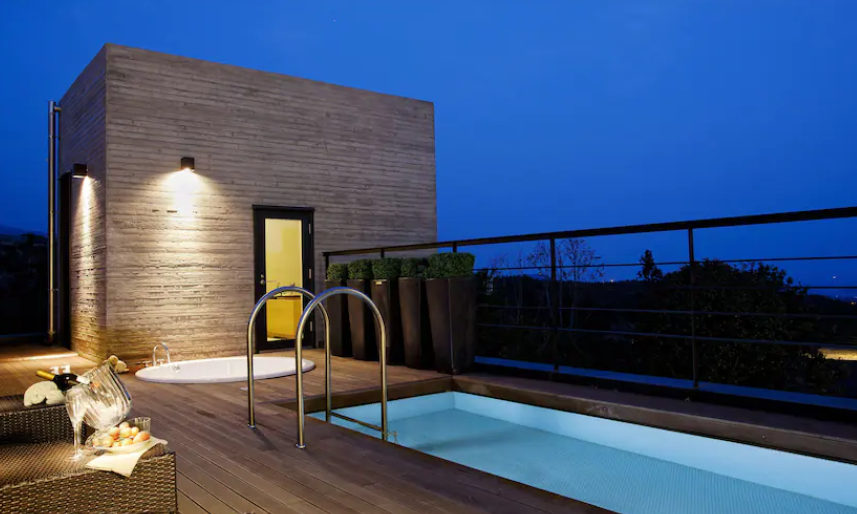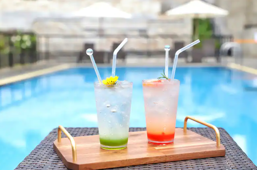 제주 아트빌라스의 최고 장점은 전체 투숙객의 숫자가 적은 만큼 성수기에도 붐비지 않는 프라이빗한 수영을 즐길 수 있다는 점이다. 풀에서 주류와 음식 메뉴를 주문할 수 있어 간단한 야외 식사도 가능하다.