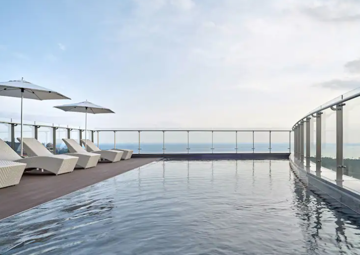 전 객실 스위트룸 컨디션으로 이뤄진 그랜드 하얏트 제주는 제주시 중심에 있어서 대중교통 접근성부터 도심지의 장점을 그대로 누릴 수 있으면서 동시에 가장 높은 곳에서 즐기는 인피니티 풀 역시 이용할 수 있다. 제주 바다와 한라산으로 이어지는 파노라믹뷰를 감상하며 사계절 내내 쾌적한 야외 수영을 할 수 있어서 인기가 많다.