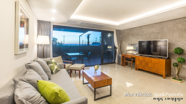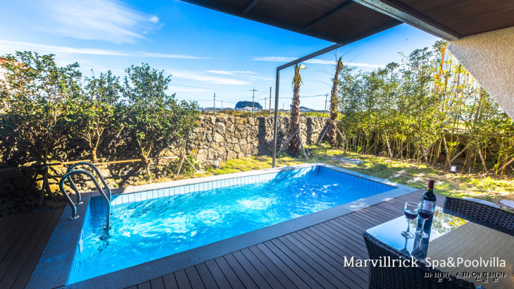 리조트안에 위치하고 있는 마빌릭 스파앤풀빌라는 1층과 2층으로 되어있는 독채형 펜션이다. 성산일출봉과 바다를 가깝게 마주하며 즐길 수 있는 개인 수영장과 스파는 여러분의 편안한 휴식을 할 수 있다. 리조트안에 중앙수영장 및 기타부대시설을 편히 이용가능하다고!