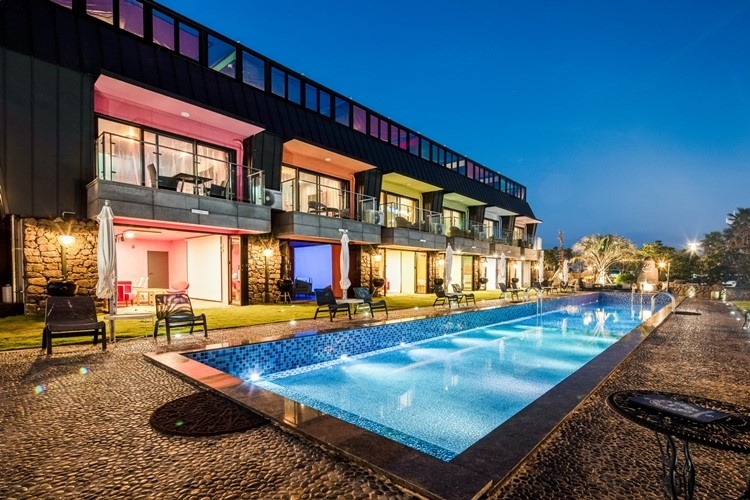 아쿠아뷰티크는 불필요한 공간 및 부대시설을 축소함으로써 숙박 요금을 모든 대중들에게 알맞게, 스테이는 알차게 커스터마이징 되었다. 아쿠아뷰티크의 객실은 봄 여름 가을 가동되는 개인 풀이 있으며 100% 바다 전망은 물론, 풀빌라 위치 특성상 삼면바다가 시야의 180도를 가득 채우고 있다.