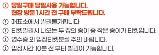 → 중고생 20,900원, KB국민카드 제휴 할인 32,900원(종일)/ 24,900원(오후), 군인/경찰/소방공무원/교직원/의료인 17,900원, 대학생 특가 17,900원, 생일자 본인 무료, 36개월 미만 영유아 무료입장(확인증 지참 시)