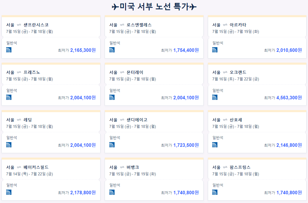 미국 서부 노선 선착순 특가!