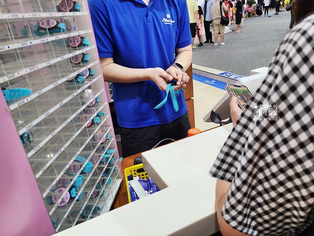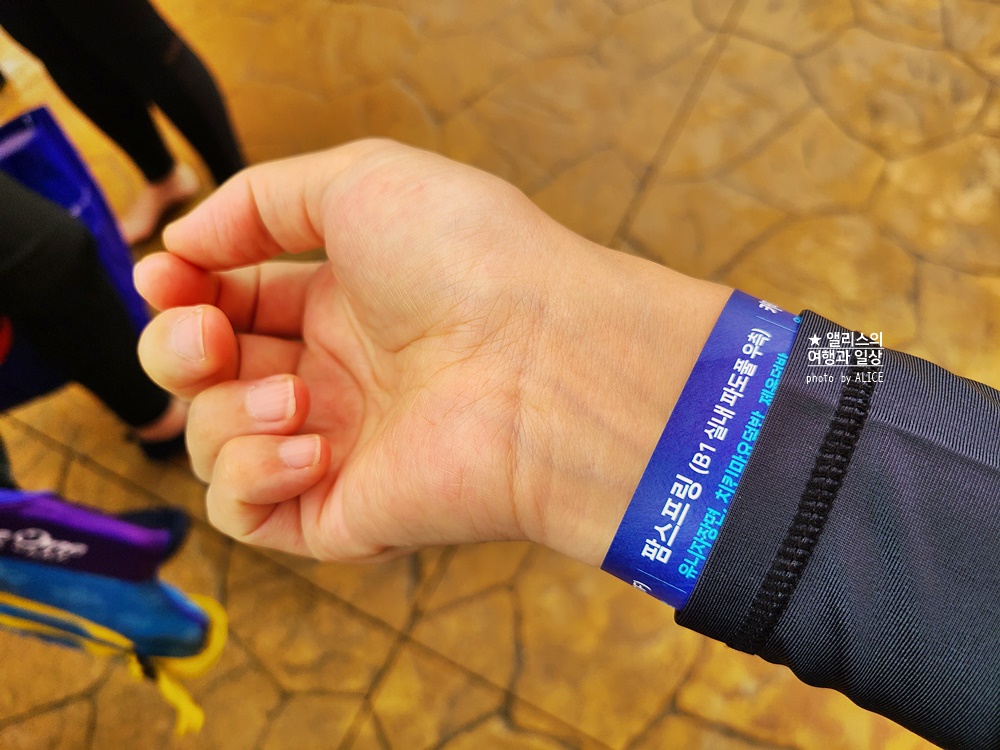 락카 키, 손목 밴드(워터파크 식사용)를 받는다.