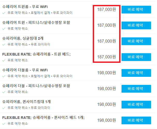 수페리어더블/트윈 룸 + 조식 2인 158,000원~
