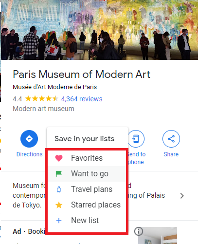 4. 파리 뮤지엄 패스 활용하는 방법 <2> 구글지도로 나만의 취향을 담은 동선/일정 만들기.