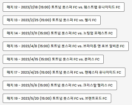· 매치 12 - 2023/2/18 (15:00) 토트넘 홋스퍼 FC vs. 웨스트햄 유나이티드 FC