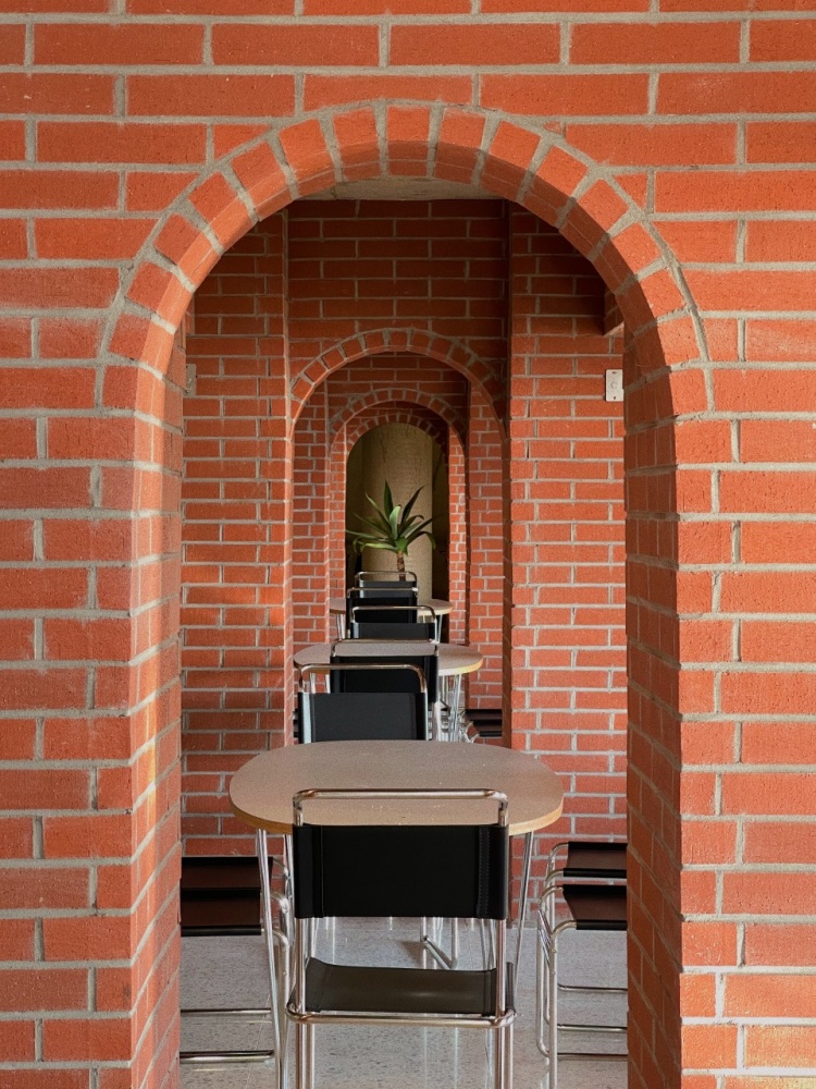 김포 한강이 한눈에 보이는 베이커리 & 브런치 카페 이지만 사실 이곳은 건물 자체의 독특한 구조가 역시나 인상적이다. 삼각형 모양의 붉은 벽돌이 쌓인 이 건축물은 마치 피라미드를 연상케 하고, 그 주변을 자세히 보면 마치 UAE나 중동 어느 도시에 있는 거대한 구조물과 건축물 사이에 있는 듯한 느낌을 준다.