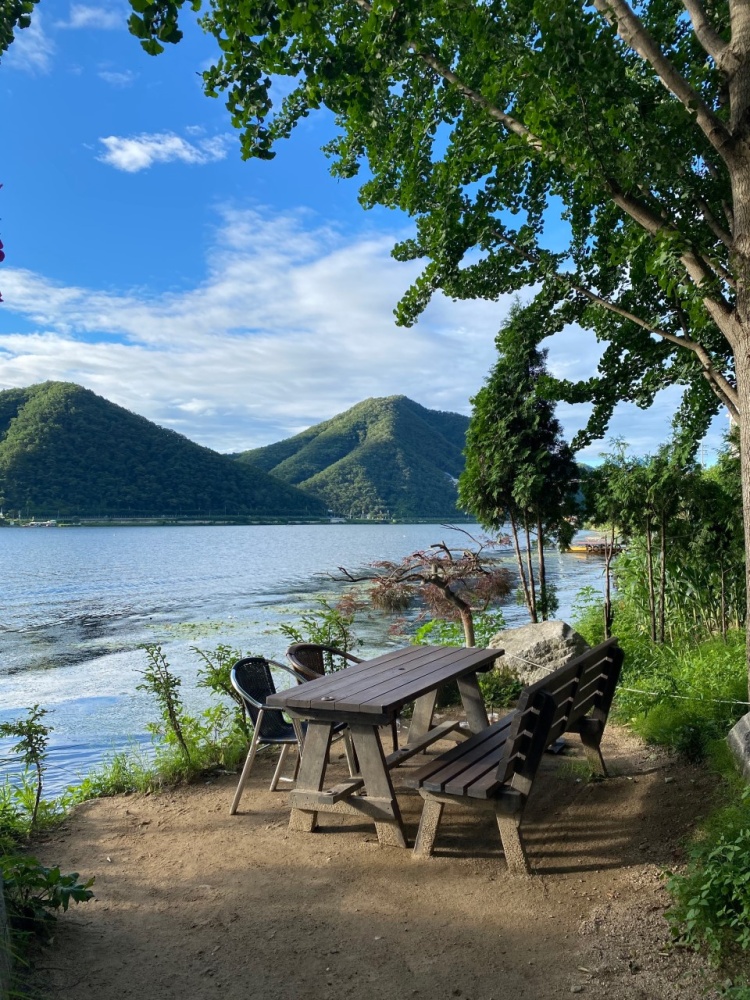 이미 방송 촬영을 많이 한 곳으로 북한강 보이는 뷰가 잘 보이는 카페다. 북한강 주변에 테이블과 의자 그리고 조경을 보고 있노라면 마치 서유럽 어딘가 한적한 곳에서 자연을 만끽할 수 있는 그런 곳에 와있는 기분이 들게 만든다. 그래서인지 이미 방송계에서도 잘 알려진 핫스폿이라고.