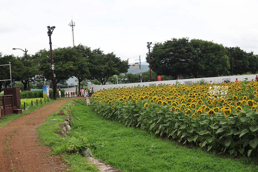 사실 이곳에 해바라기가 있는지 모르고 선덕여고 근처 연꽃단지에 들렀다가 황리단길을 가기 위해서 걸어 가기로 했다. 걸어가는 길에 동부사적지를 통해서 이동했는데 그 순간 내 눈에 들어오던 어마어마한 장관의 해바라기 밭이 눈에 띄는 것 아닌가.