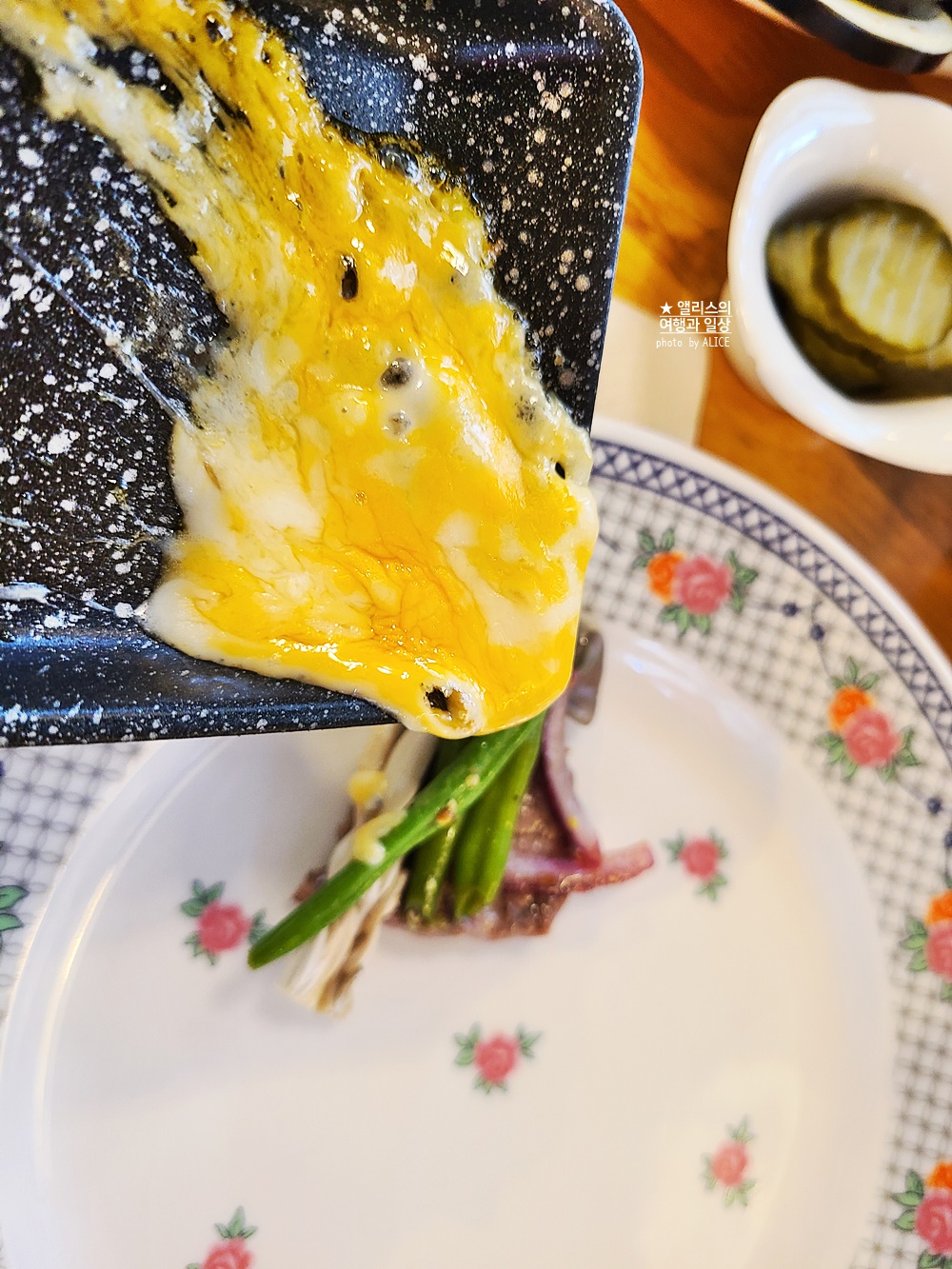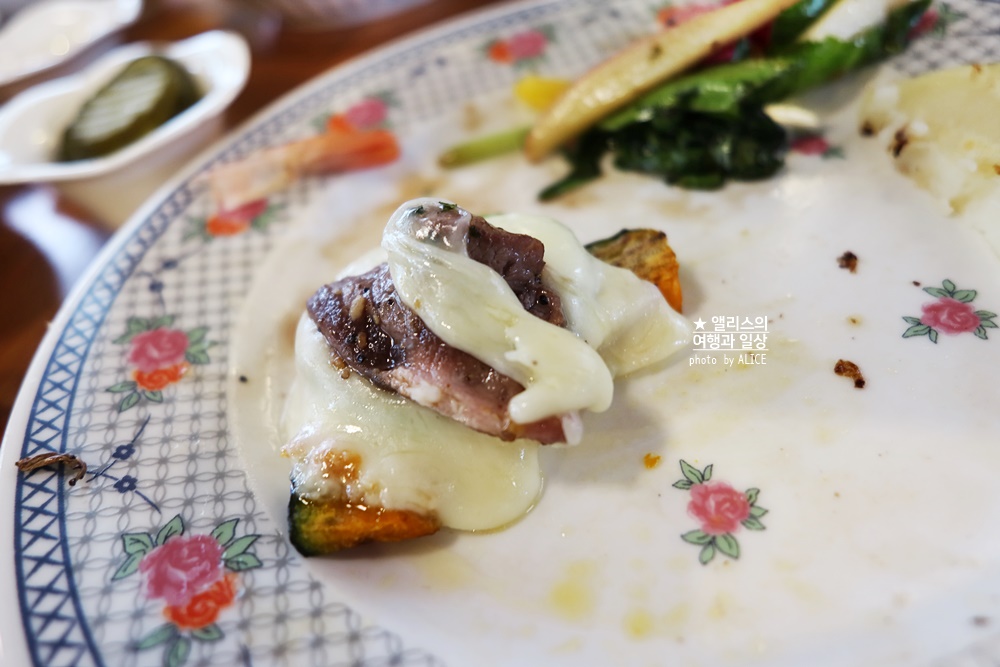채소에 특별한 양념을 더해도 좋지만 그냥 먹어도 좋고 잘 구워서 고기와 함께 치즈를 더하니 그 맛이 아주 예술이었다. 진짜 강추! 특히 런치로 예약하면 추가 2천 원씩 할인도 되니, 여유로운 오후 시간에 배부른 라클렛 맛보시길 추천!