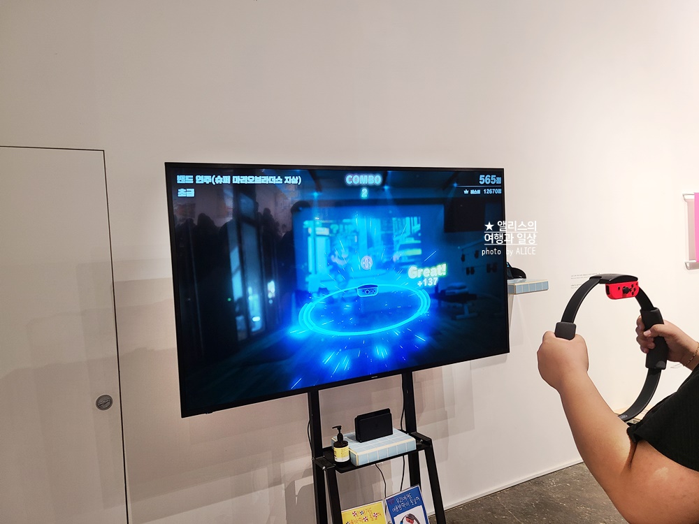 링피트도 직접 해볼 수 있다. 직원의 안내와 도움을 받아 실행 후 아이들과 함께 링피트의 모양을 맞추는 게임. 생각보다 신났고 아이들이 좋아했다.