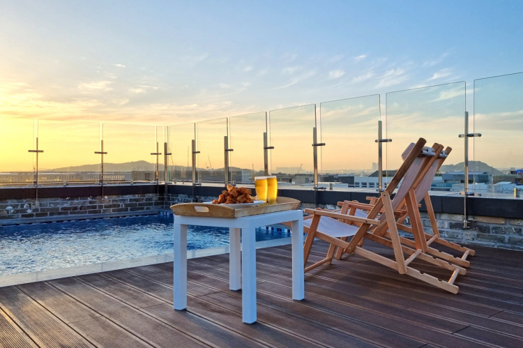 수영장 주변 테이블과 파라솔, 빈백 등이 비치되어 있어서 여유롭게 사용 가능하며 멋진 포토존이 되어주기도 한다. 주변에 높은 건물이 거의 없어서 덕분에 충분한 개방감을 느낄 수 있으며 동시에 노을이 질 때 아름다운 빛으로 가득해 멋진 루프탑 수영장이 된다.