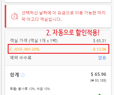 보통 카드사 할인코드가 있어서 할인코드를 입력해야하지만 아고다 카드사 전용 할인 프로모션은 그럴 필요는 없다.