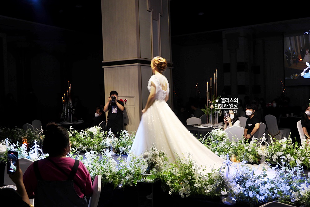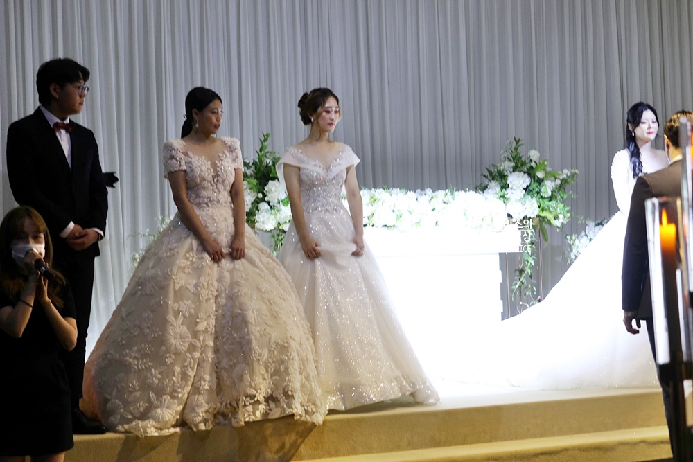 무엇보다 가장 인기가 많았던 것은 웨딩드레스 패션쇼였다. 아무래도 예비부부들이 대부분 방문했던 터라 웨딩드레스 패션쇼를 할 때 다들 많이 집중했다. 드레스 소재와 디자인을 눈으로 보는 것과 직접 착용 한상태에서 보는 것은 아무래도 차이가 크니 이런 웨딩드레스 패션쇼는 선택하는 데 도움을 준다.
