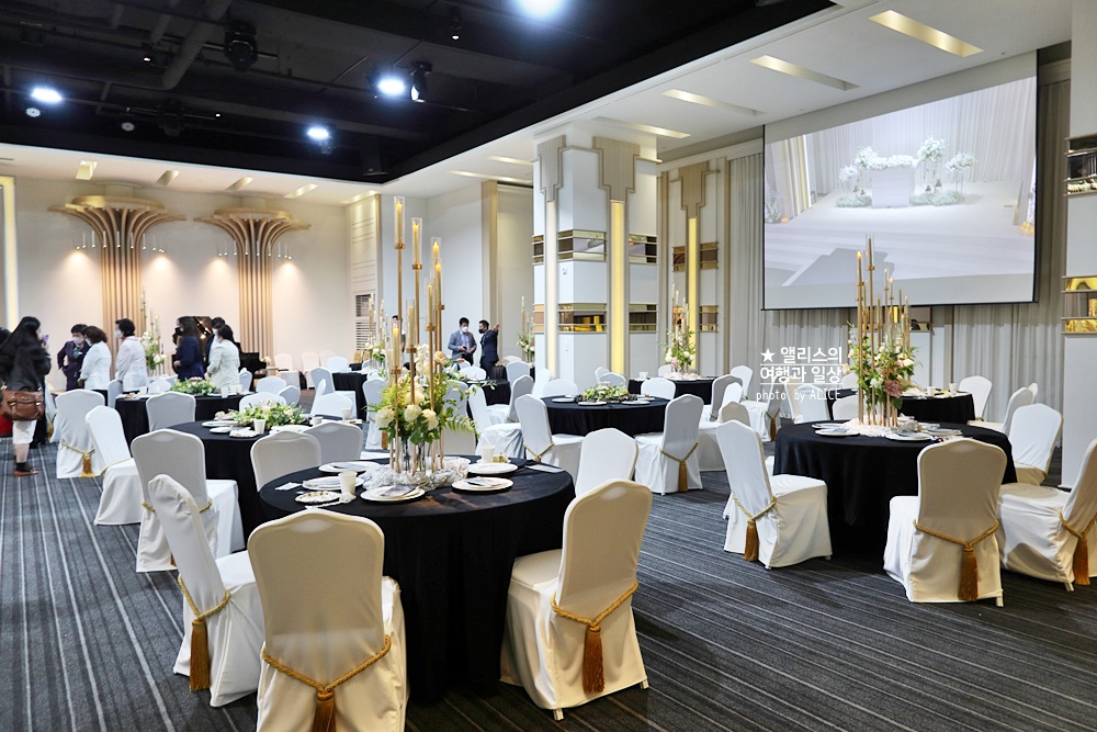 그런 단점을 보완해서 리뉴얼을 완료한 엠블던호텔 웨딩 & 컨벤션은 최대 1팀, 그리고 각 팀당 여유롭게 90분간 결혼식 행사를 준비 진행할 수 있고,  공간을 분리한 것이 특징이다.