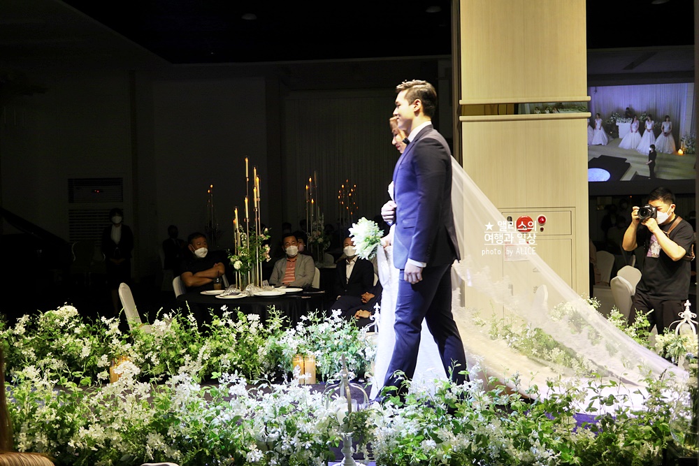 은은하고 고급스러운 분위기를 연출하고 있던 헤리티지홀. 이곳은 리뉴얼이 완성된 곳으로 깔끔하고 모던한데 고급스러운 분위기를 가지고 있었다. 그리고 무엇보다도 버진로드가 화려하고 예뻤다.