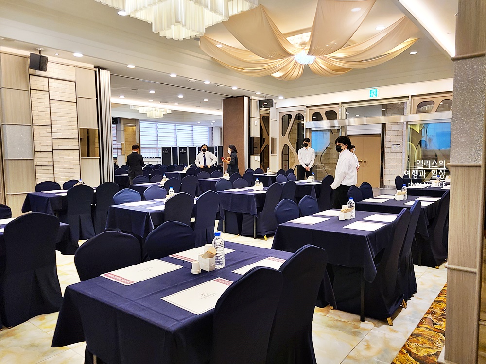 호텔초대전에는 뮤지컬&댄스 공연과 더불어 엠블던 호텔에 대한 소개와 설명 그리고 웨딩드레스 패션쇼와 럭키드로우고 구성된 행사였다. 나 역시 시간맞춰서 도착 완료. 호텔 연회홀에는 이미 사람들이 들어서고 있었다.
