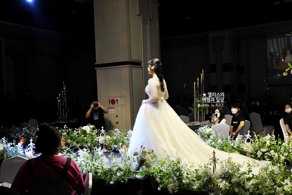 무엇보다 가장 인기가 많았던 것은 웨딩드레스 패션쇼였다. 아무래도 예비부부들이 대부분 방문했던 터라 웨딩드레스 패션쇼를 할 때 다들 많이 집중했다. 드레스 소재와 디자인을 눈으로 보는 것과 직접 착용 한상태에서 보는 것은 아무래도 차이가 크니 이런 웨딩드레스 패션쇼는 선택하는 데 도움을 준다.